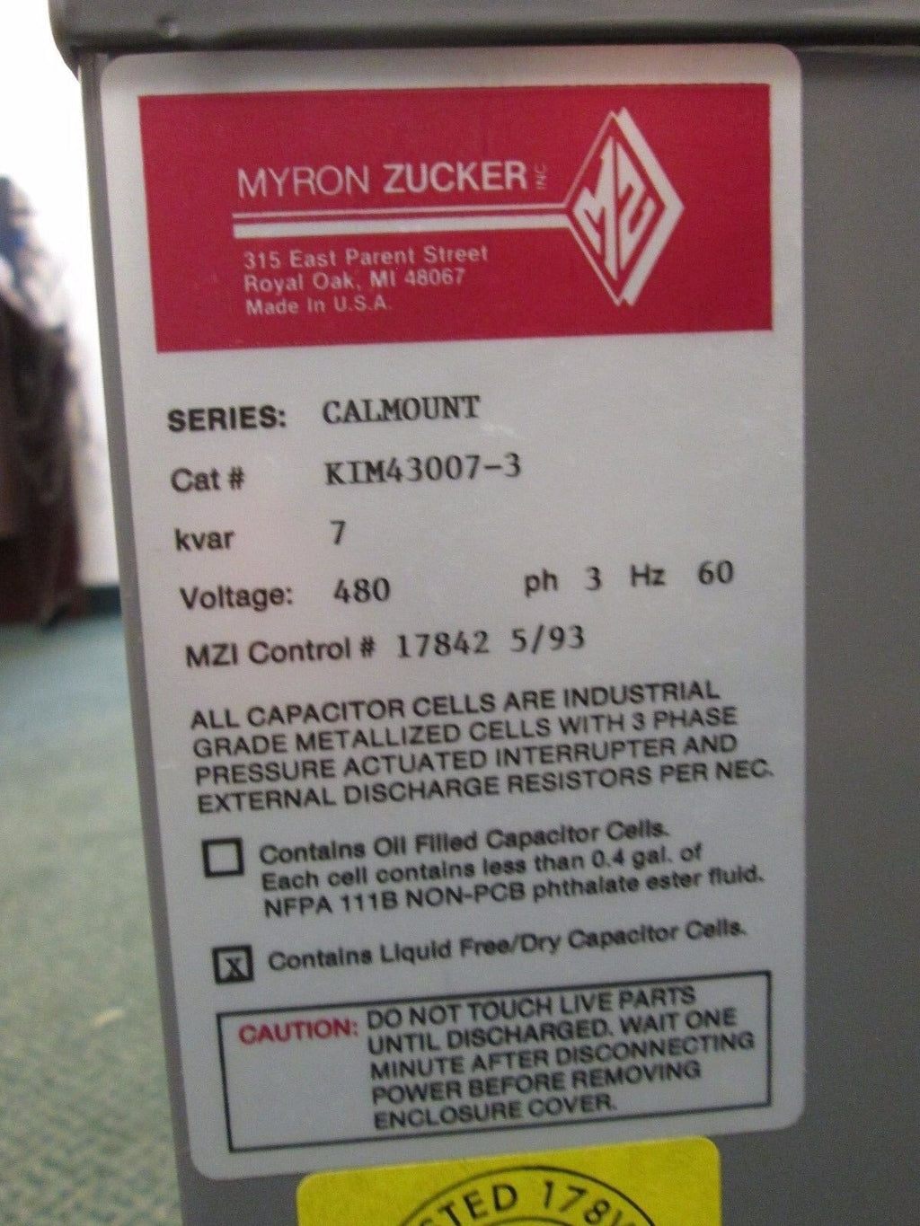 Myron Zucker Calmount Capacitor KIM43007-3 7 KVAR 480V 3Ph New Surplus