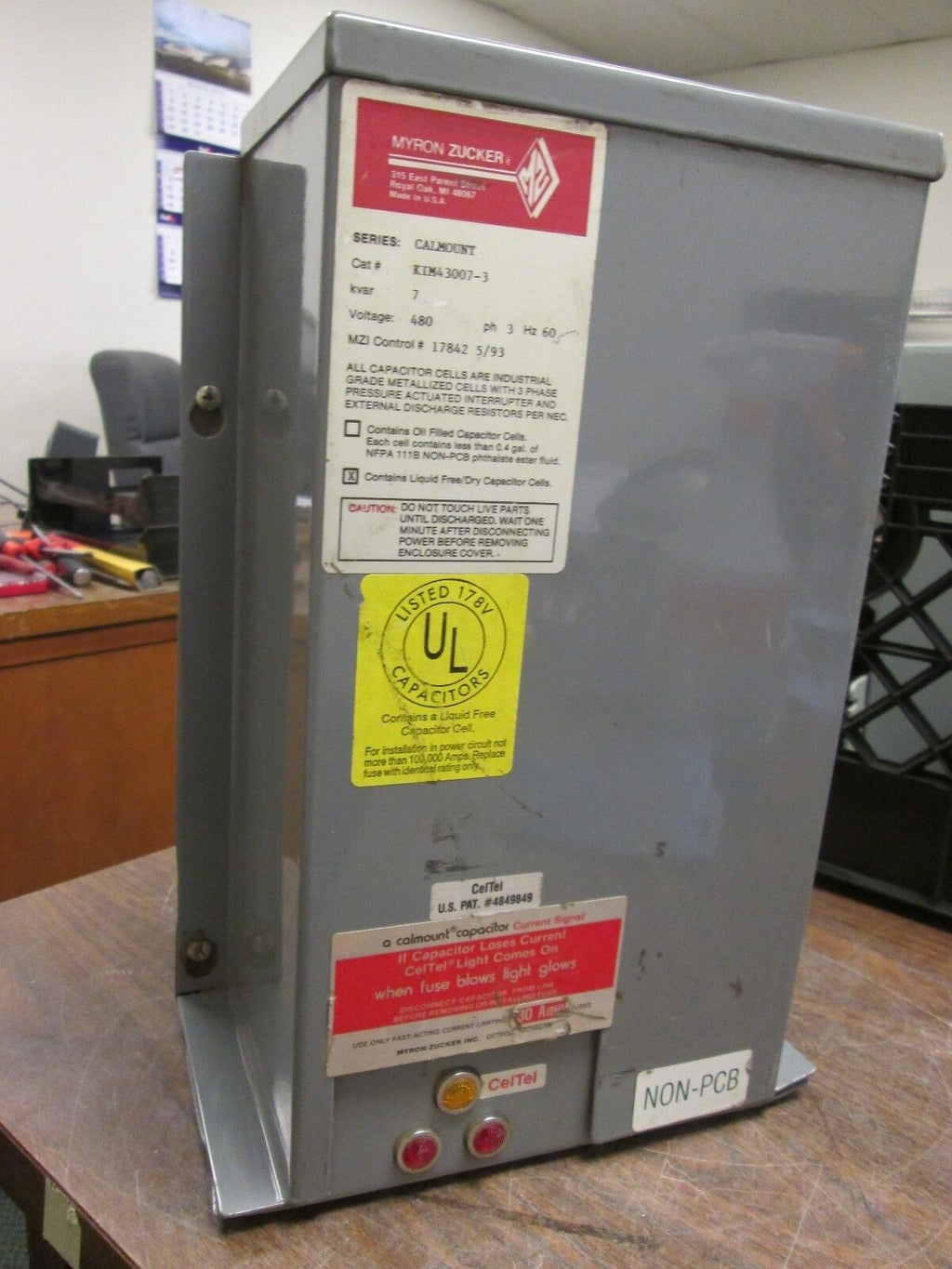 Myron Zucker Calmount Capacitor KIM43007-3 7KVAR 480V 3Ph 60Hz UsedLOC# AB3B2-1- KIM43007-3