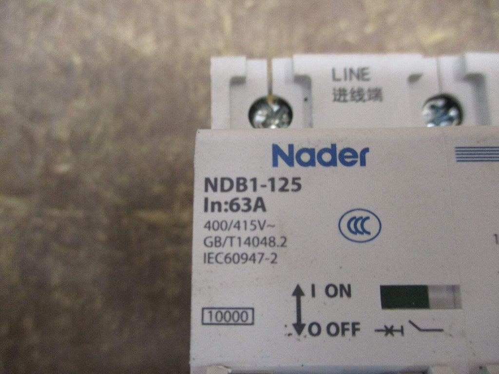 Nadar Circuit Breaker NDB1-125 63A 400/415V 2P Used Nadar Circuit Breaker Part #: NDB1-125 63 A 400/415 V 2P Used Loc: 59E4-6