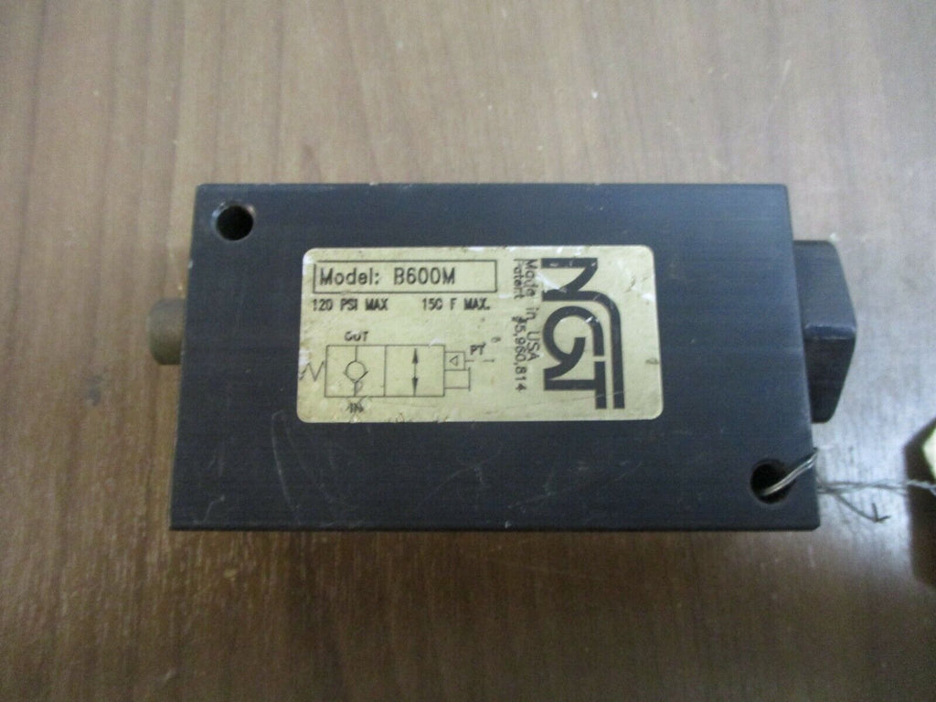 NGT Check Valve B600M 120PSI 150°F Used Condition: UsedMPN: B600MBrand: NGT NGT Check Valve B600M 120PSI 150°F Used NGT Check Valve Part #: B600M 120 PSI 150° F Used Loc: 19I4-38 NGT Check Valve Part #: B600M 120 PSI 150° F Uséd Loc: 19I4-38