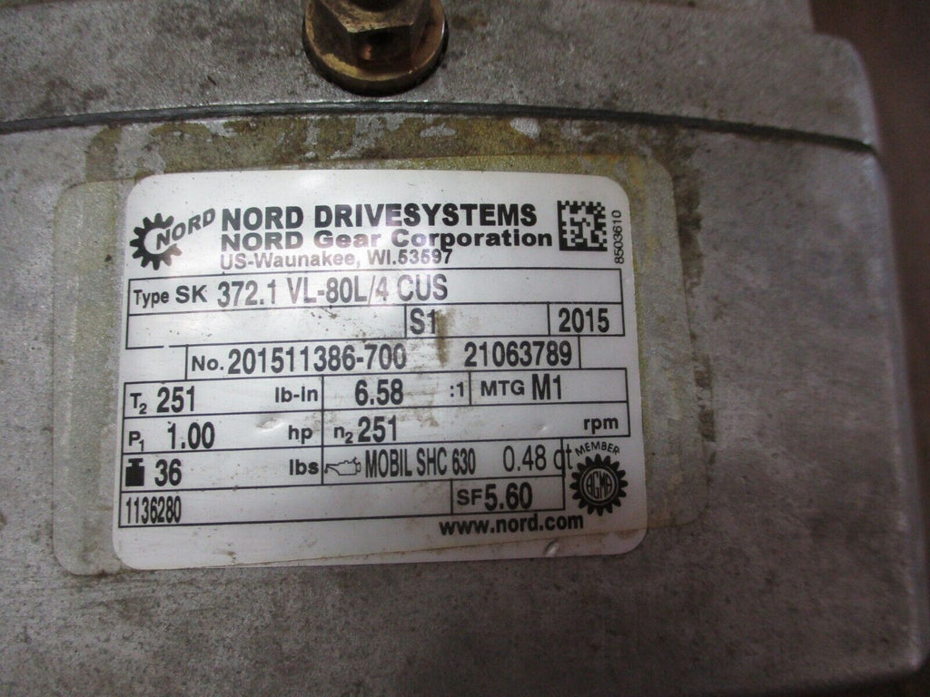 Nord Gearmotor Type SK 80L/4 CUS 1HP 1800RPM 230/460V 3.66/1.83A 60Hz Used