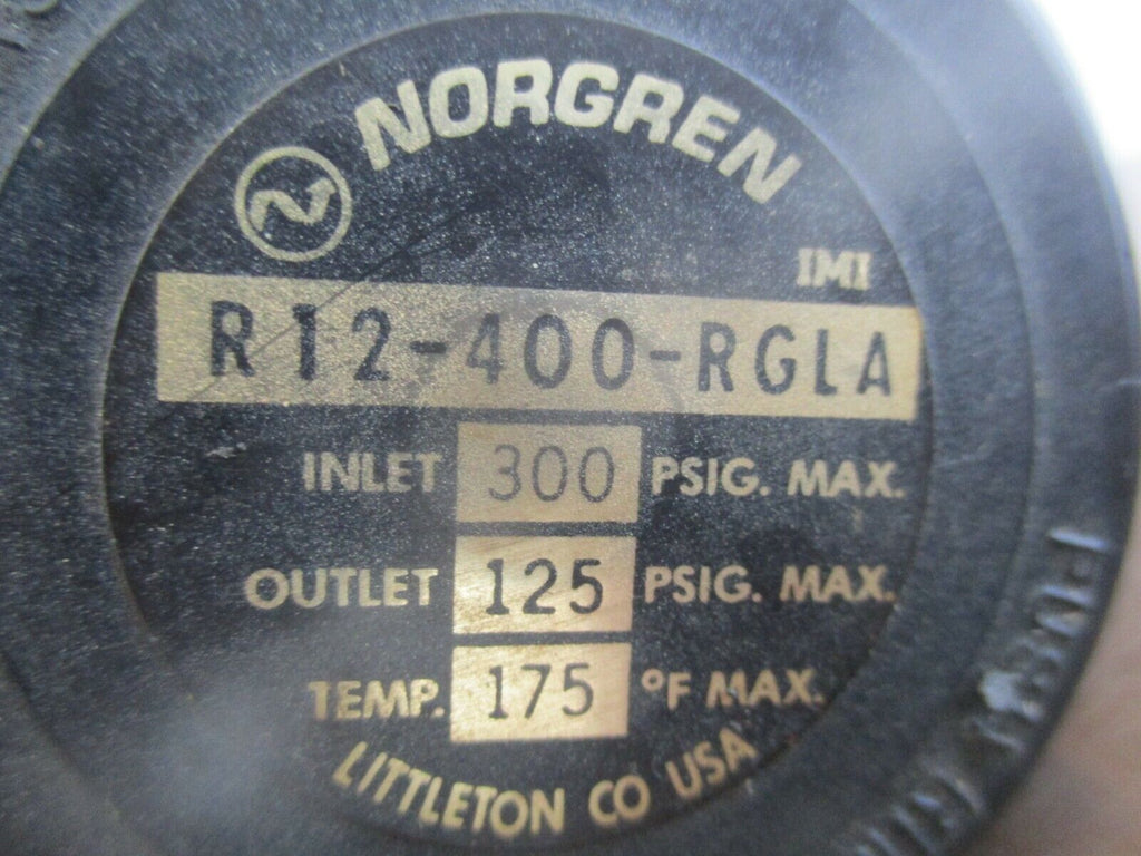 Norgren Regulator R12-400-RGLA Inlet: 300PSIG Outlet: 125PSIG 175°F Used