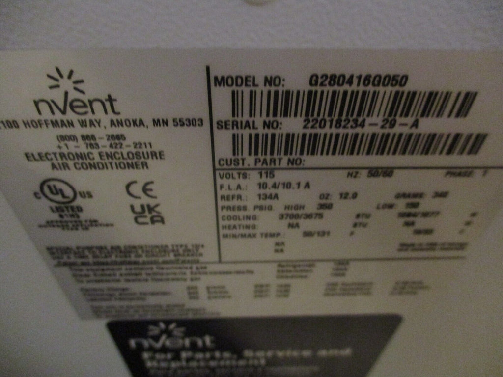 nVent Hoffmann Enclosure Air Conditioner G280416G050 3800/4000 BTU 115V 1Ph Condition: New – Open boxBrand: nVentMPN: G280416G050Type: Air Conditioner nVent Hoffmann Enclosure Air Conditioner G280416G050 3800/4000 BTU 115V 1Ph Condition: New – Open boxBrand: nVentType: Air ConditionerMPN: G280416G050nVent Hoffmann Enclosure Air Conditioner Part #: G280416G050 3800/4000 BTU 115 V 1Ph Type 12 Enclosure Dims: 34" x 22" x 16" Weighs: 116 LBS New Surplus Loc: AB11-7009 / AB38M3