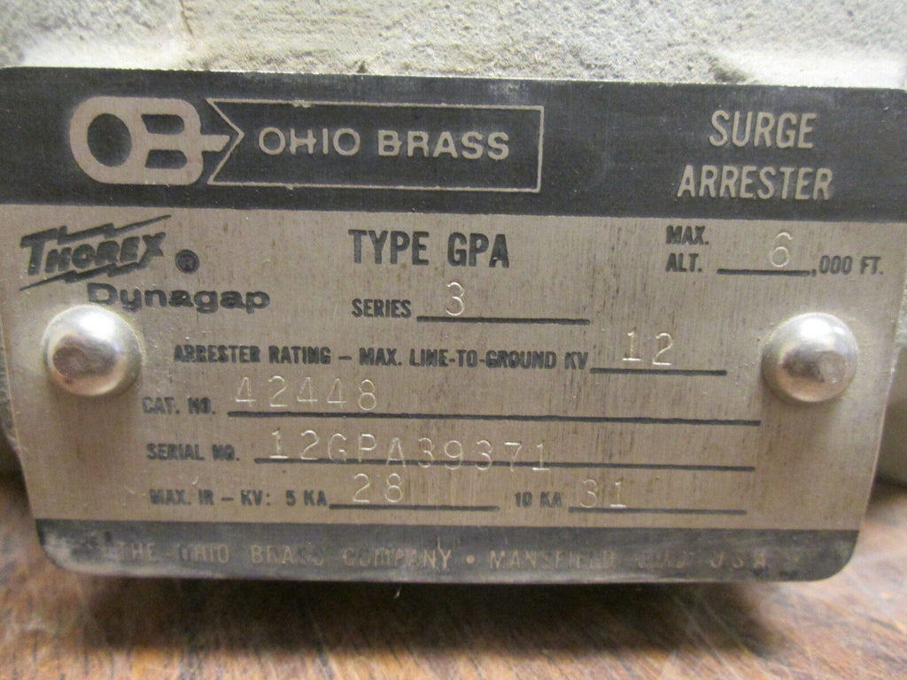 Ohio Brass Thorex Dynagap Type GPA Arrester 42448 12KV Rating Used