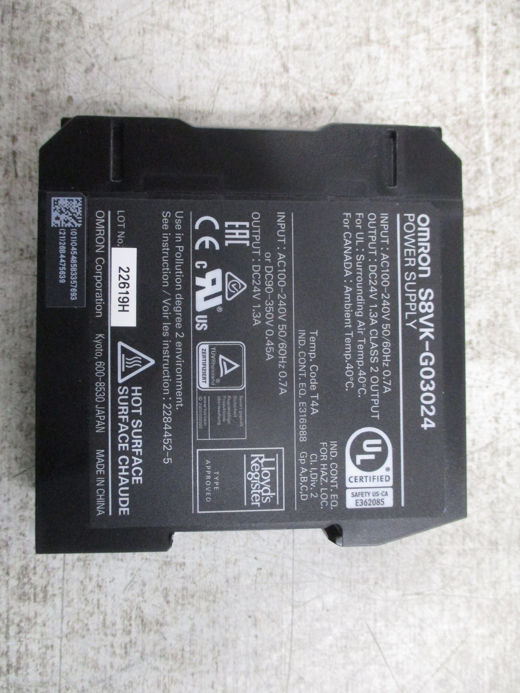 Omron Power Supply S8VK-G03024 Input: AC 100-240V 50/60Hz 0.7A Output: DC 24V 1.3A Used LOC 58A4-12