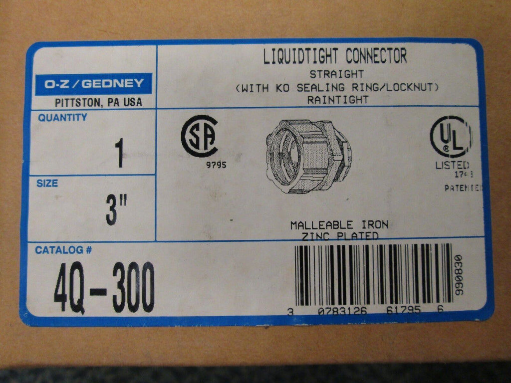 Oz Gedney Liquidtight Connector 4Q-300 Size 3" New Surplus