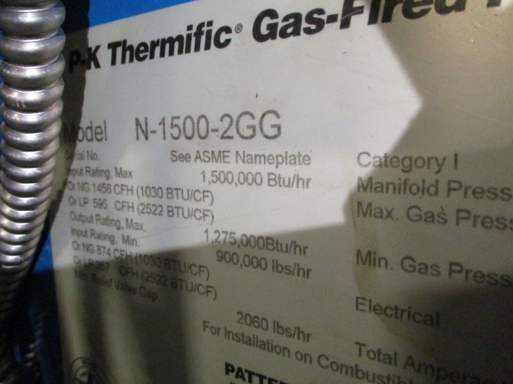 P-K Thermific Boiler N-1500-2GG Natural Gas 1,500,000 BTU 120V 60Hz 1Ph Used