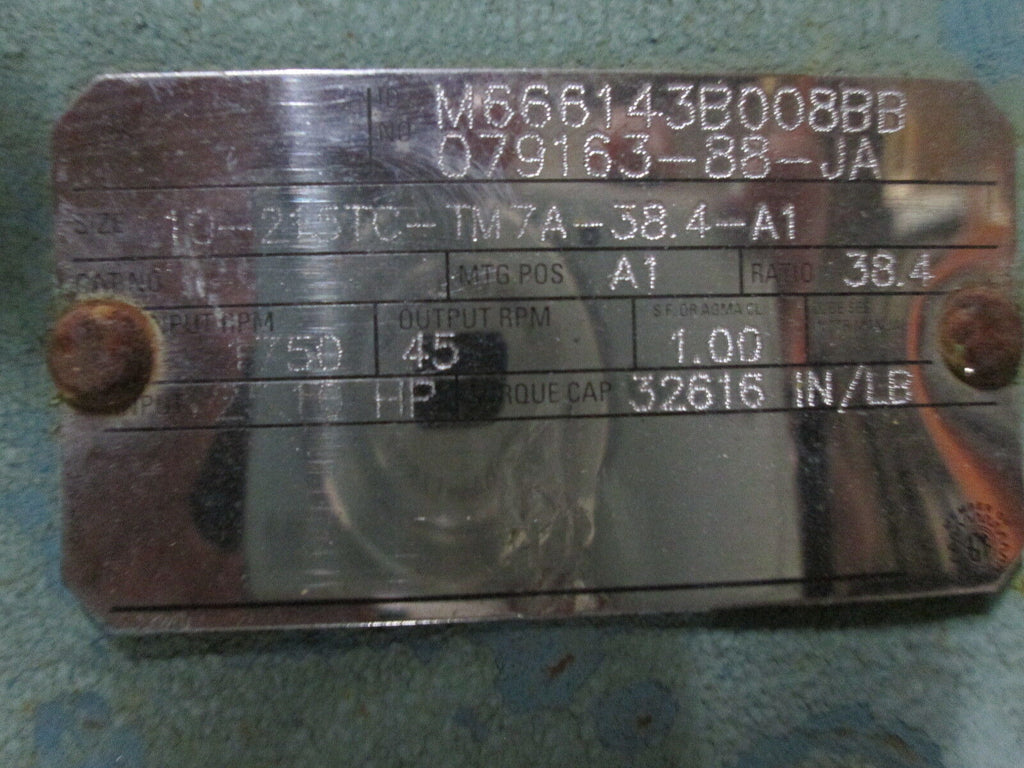 Parker Motor w/ Gear 10-215TC-TM7A-38.4-A1 Ratio 38.4 45RPM Out Used Condition: UsedMPN: 10-215TC-TM7A-38.4-A1Brand: Parker Parker Motor w/ Gear 10-215TC-TM7A-38.4-A1 Ratio 38.4 45RPM Out Used Parker Motor w/ Gear Part #: 10-215TC-TM7A-38.4-A1 Ratio: 38.4 45RPM Out 10HP32616 IN/LB TorqueUsedLOC AB4J4-12 / AB4D4 Parker Motor w/ Gear Part #: 10-215TC-TM7A-38.4-A1 Ratio: 38.4 45RPM Out 10HP 32616 IN/LB Torque Uséd LOC AB4J4-12 / AB4D4