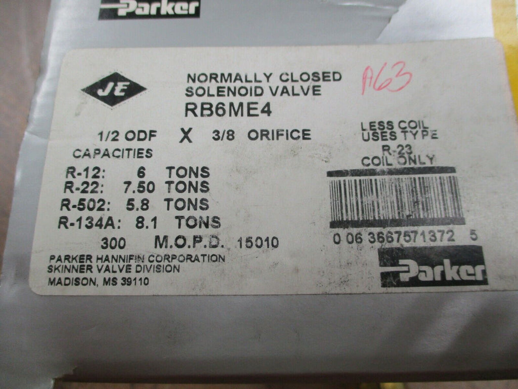 Parker Solenoid Valve RB6ME4 Normally Closed 1/2" ODF x 3/8" Orifice New Surplus Parker Solenoid Valve Part #: RB6ME4 Normally Closed 1/2" ODF x 3/8" Orifice New SurplusLOC 12E3-36 Parker Solenoid Valve Part #: RB6ME4 Normally Closed 1/2" ODF x 3/8" Orifice New SurplusLOC 12E3-36eBay integration byParker Solenoid Valve RB6ME4 Normally Closed 1/2" ODF x 3/8" Orifice New Surplus