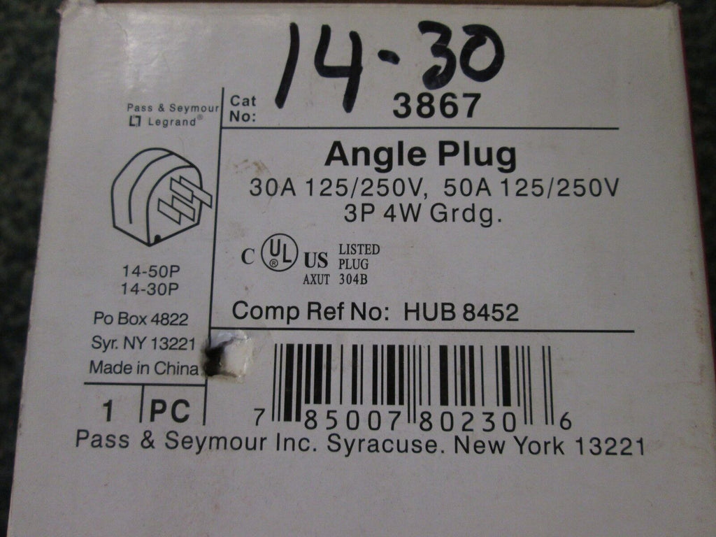 Pass & Seymour Angle Plug 3867 30/50A 125/250V 3P 4W New S...