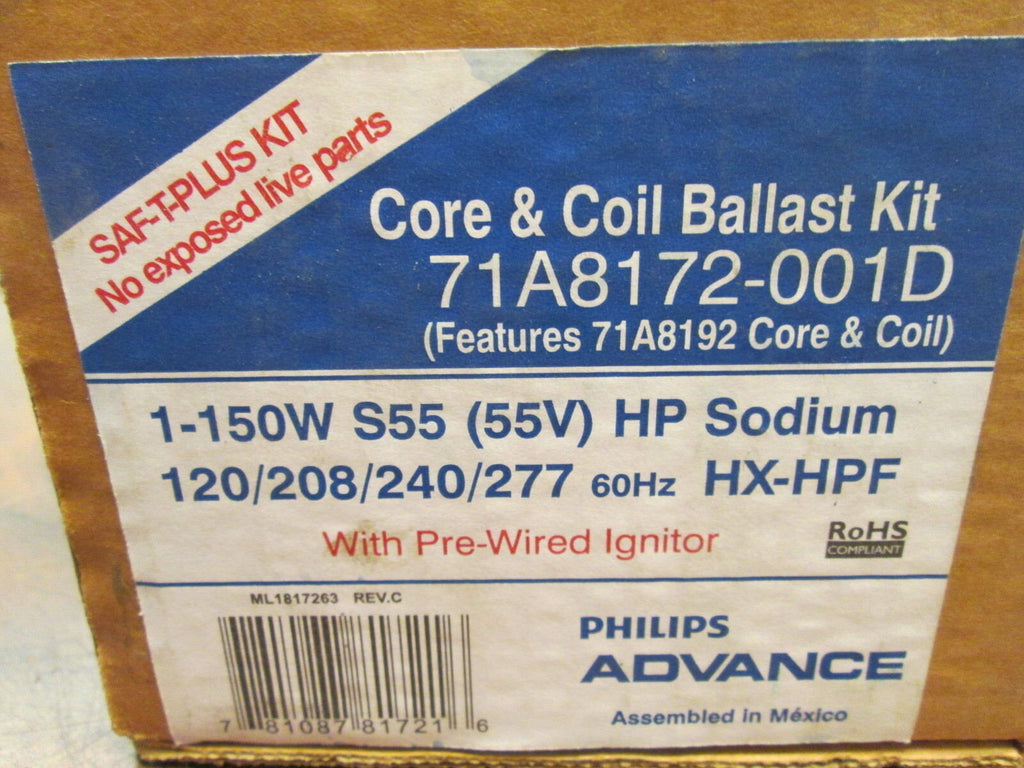 Philips Advance Core & Ballast Kit 71A8172-001D 1-150W 120/208/240/277V 60Hz_x000D_ Condition: New – Open boxBrand: PhilipsMPN: 71A8172-001D Philips Advance Core & Ballast Kit 71A8172-001D 1-150W 120/208/240/277V 60Hz Philips Advance Core & Ballast Kit Part #: 71A8172-001D 1-150W 120/208/240/277V 60HzNew SurplusLOC 24B3-10 Philips Advance Core & Ballast Kit Part #: 71A8172-001D 1-150W 120/208/240/277V 60Hz New Surplus LOC 24B3-10