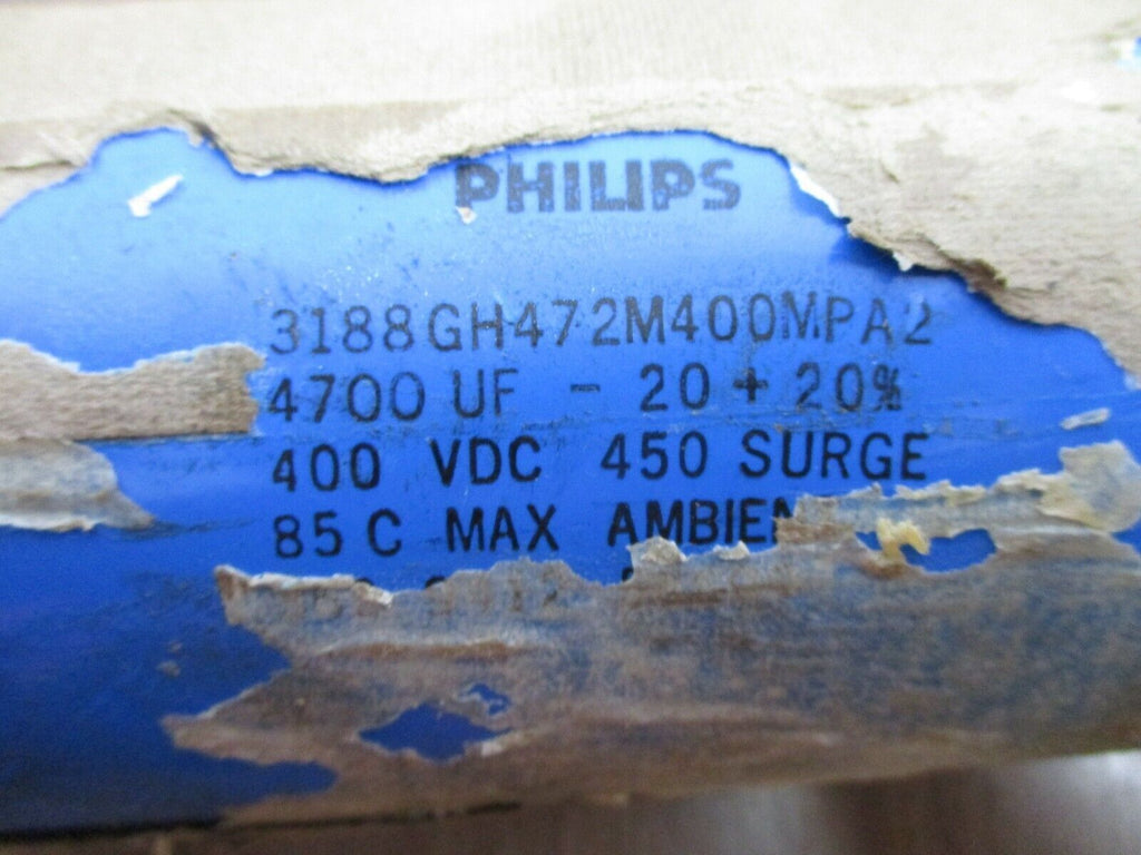 Philips Capacitor 3188GH472M400MPA2 4700UF 400VDC *Torn Plastic* Used