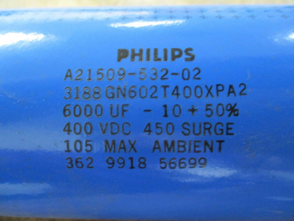 Philips Capacitor A21509-532-02 6000UF 400VDC Used Condition: ...