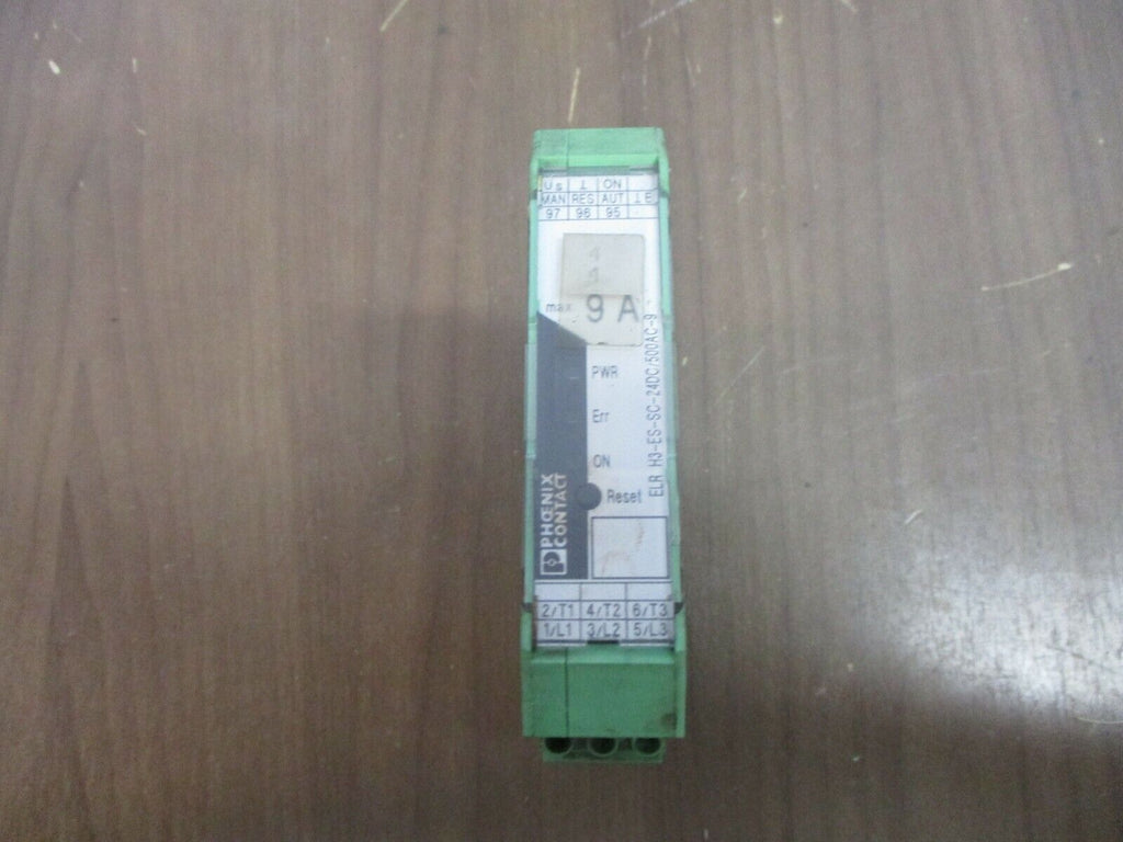 Phoenix Contact Hybrid Motor Starter ELR H3-ES-SC-24DC/500AC-9 Input: 24VDC Used Condition: UsedMPN: ELR H3-ES-SC-24DC/500AC-9Brand: Phoenix ContactType: Hybrid Motor Starter Phoenix Contact Hybrid Motor Starter ELR H3-ES-SC-24DC/500AC-9 Input: 24VDC Used Phoenix Contact Hybrid Motor Starter Part #: ELR H3-ES-SC-24DC/500AC-9 Input: 24 VDC Output: 500 VAC 9/6.6 A Used Loc: 20F4-57 Phoenix Contact Hybrid Motor Starter Part #: ELR H3-ES-SC-24DC/500AC-9 Input: 24 VDC Output: 500 VAC 9/6.6 A Uséd Loc: 20F4-57