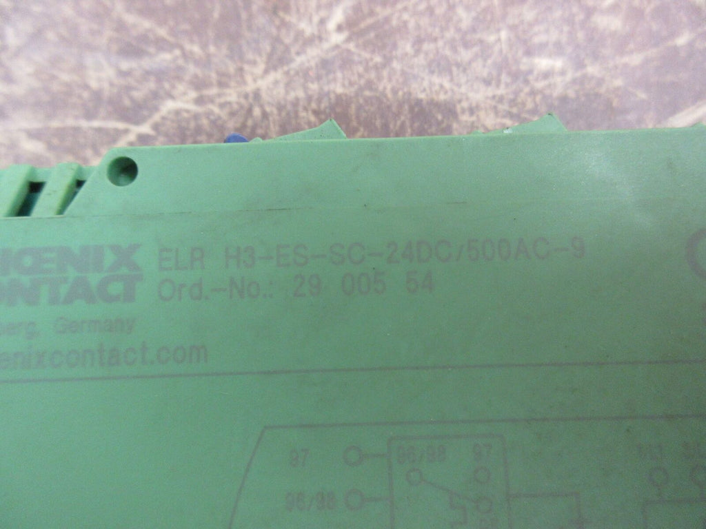 Phoenix Contact Hybrid Starter 2900554 ELR H3-ES-SC-24DC/500AC-9 Used Phoenix Contact Hybrid Starter Part #: 2900554 ELR H3-ES-SC-24DC/500AC-9 Used Loc: 59F5-13