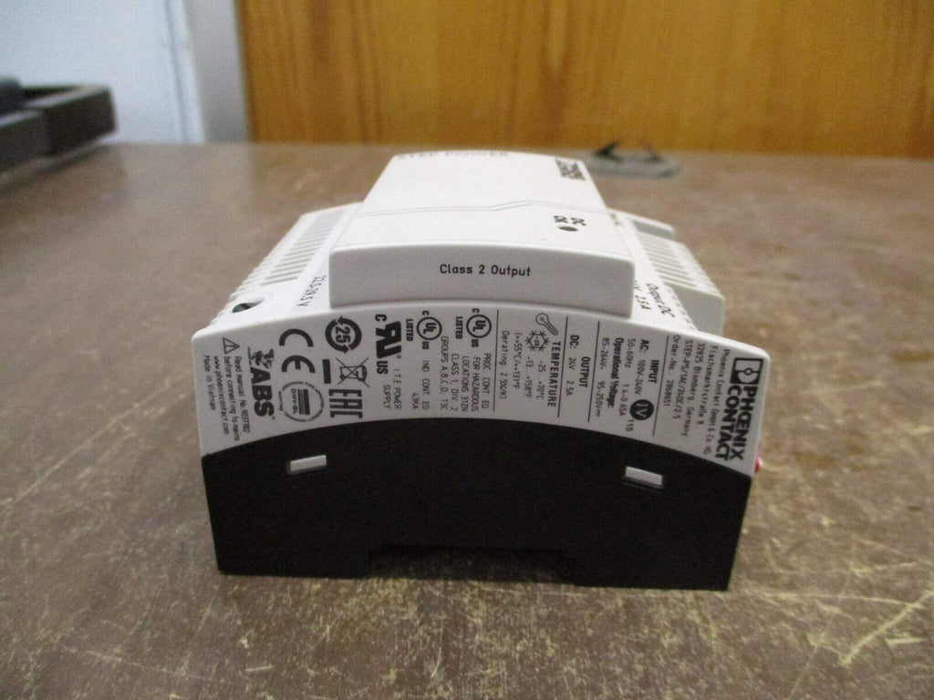 Phoenix Contact Step Power Supply Part #: 2868651 STEP-PS/1AC/24DC/2.5 Input: 100-240 VAC Output: 24 VDC 2.5 A Used Loc: 59C4-16 / 58E1-3 / 57I4