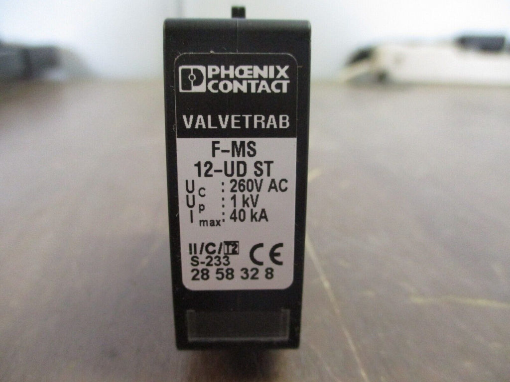Phoenix Contact Valvetrab Surge Protection Plug Part #: F-MS 12-UD ST Uc: 260 VAC Up: 1kV Imax: 40kA Used Loc: 12E2-36 / 27G5