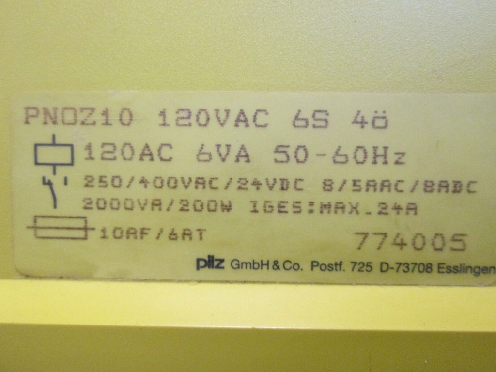 Pilz Safety Relay PNOZ10 120VAC 6VA 50/60Hz Used Condition: Us...