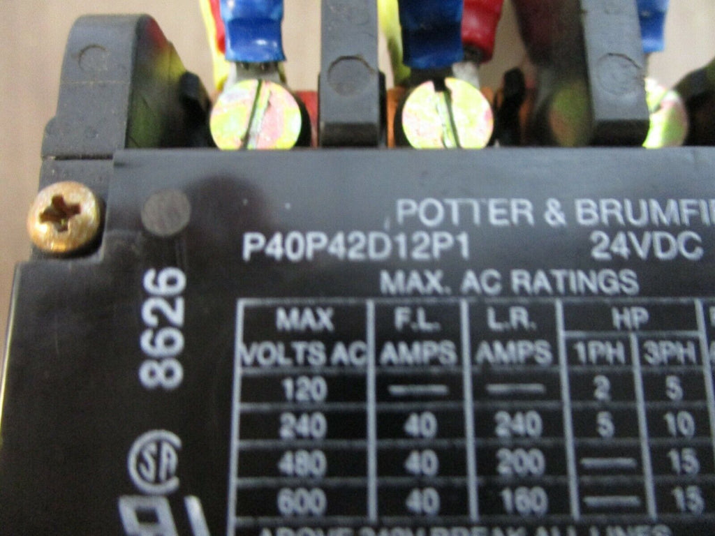 Potter & Brumfield Contactor P40P42D12P1 24VDC Coil 40A 600V Used