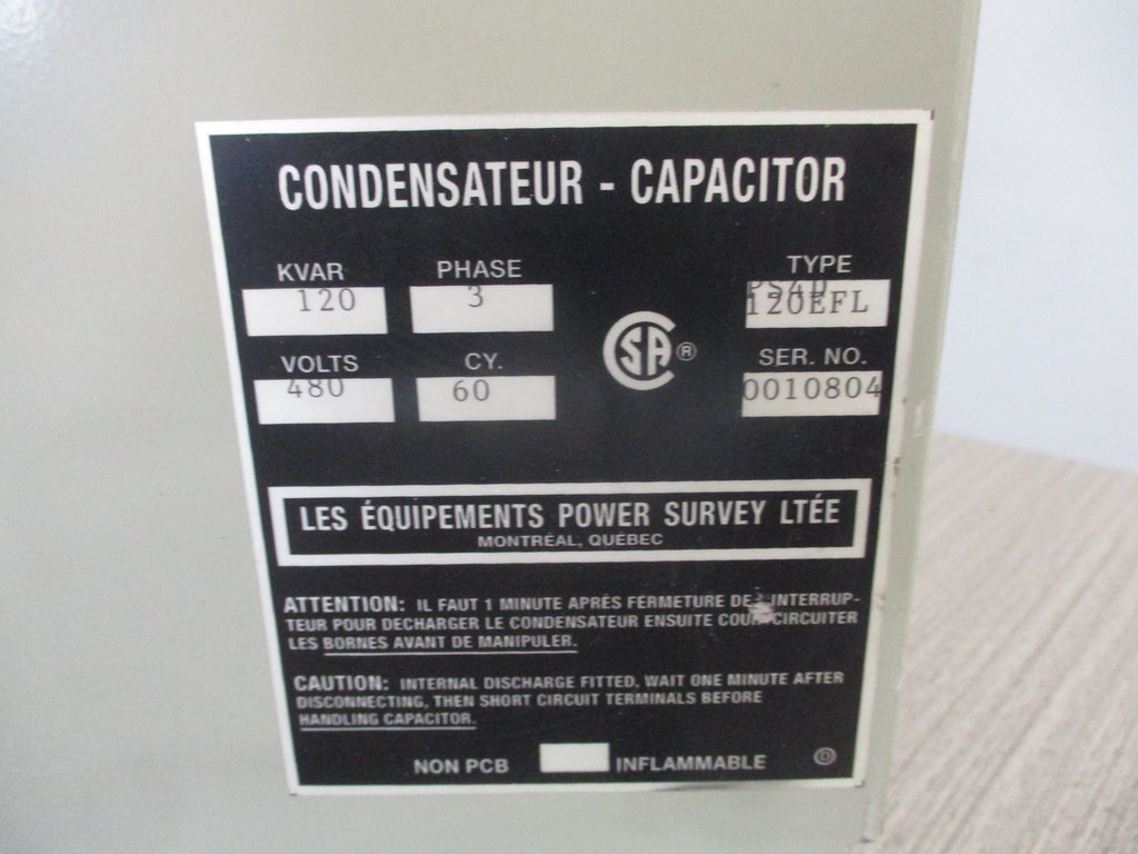 Power Survey Capacitor PS4D 120EFL 120kVAR 480V 9Ph 60Hz Used
