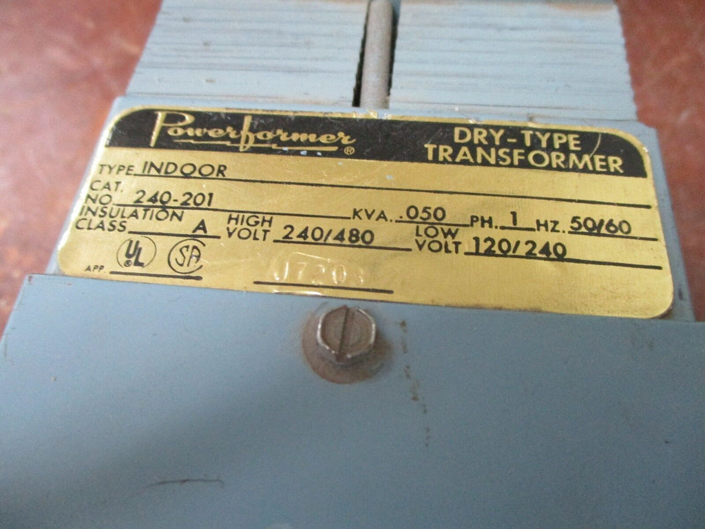 Powerformer Transformer Kit 240-201 .050KVA Pri: 240/480V Sec: 120/240V 50/60Hz Condition: UsedMPN: 240-201Brand: Powerformer Powerformer Transformer Kit 240-201 .050KVA Pri: 240/480V Sec: 120/240V 50/60Hz Powerformer Transformer Kit Part # 240-201 .050KVA Pri: 240/480V Sec: 120/240V 50/60Hz 1Ph UsedLOC 17C1-14 Powerformer Transformer Kit Part # 240-201 .050KVA Pri: 240/480V Sec: 120/240V 50/60Hz 1Ph Uséd LOC 17C1-14