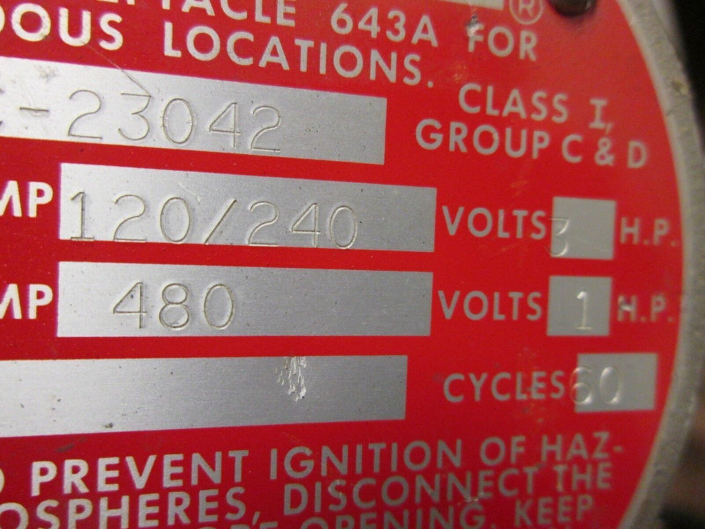 Pyle National Hazardous Location Receptacle ERRC-23042 3W 4P_x000D_ Condition: UsedBrand: Pyle NationalType: Electrical PlugMPN: KPD-86036-PRModel: Plug & Receptacle Set Pyle National Hazardous Location Receptacle ERRC-23042 3W 4P Pyle National Hazardous Location Receptacle ERRC-23042 30A @ 120/240V7A @ 480V3W 4PCondition: UsedLoc: 57L3-11 Pyle National Hazardous Location Receptacle ERRC-23042 30A @ 120/240V7A @ 480V3W 4PCondition: Uséd Loc: 57L3-11