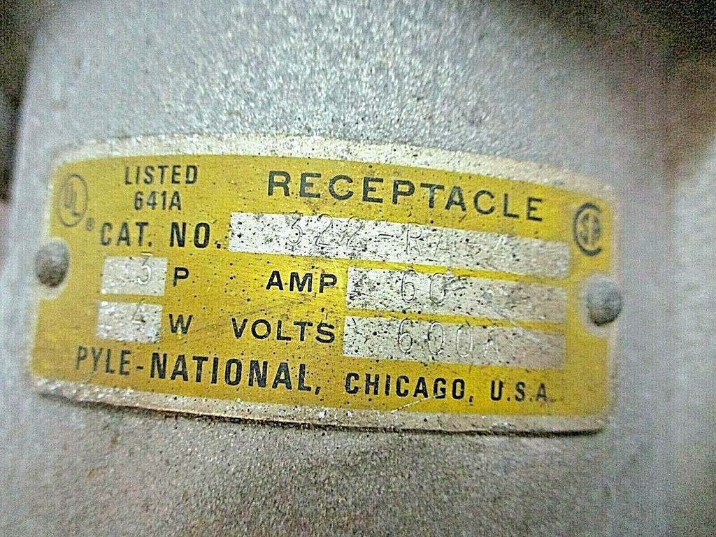 Pyle National Receptacle w/Base 322-RA-4 60A 600V 3P 4W Used_x...