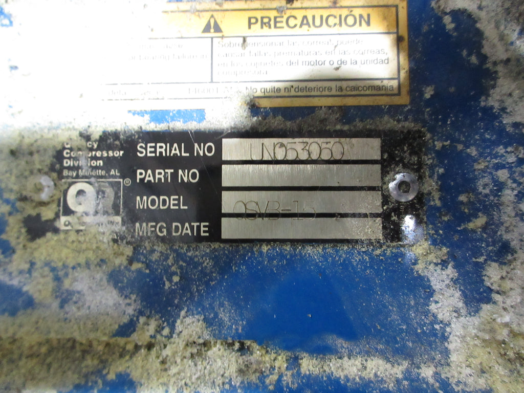 Quincy QSVB-15 Rotary Screw Vacuum Pump QSVB-15 15HP Weight: 980 LBS Used