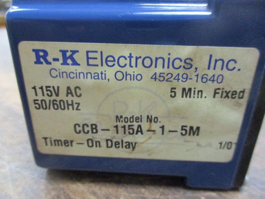 R-K Electronics On Delay Timer CCB-115A-1-5M 115VAC 50/60Hz 5 Min Fixed Used