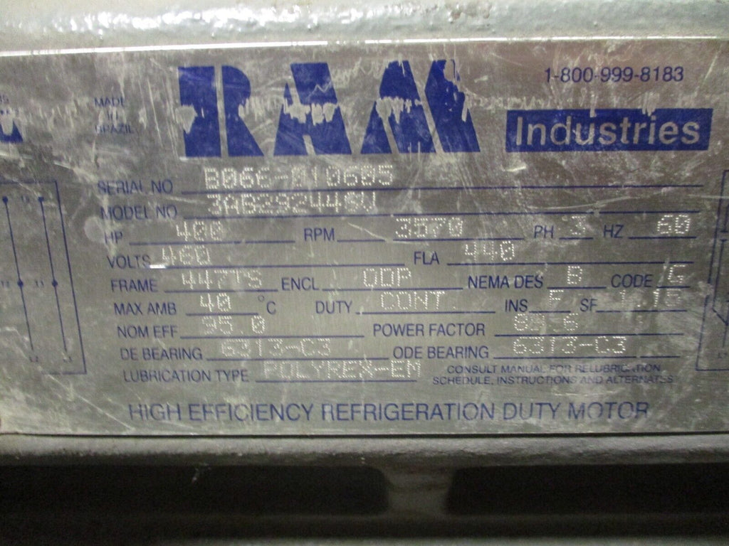 RAM Industries Motor 3AB29244SV 400HP 3600RPM 460V 440A 3Ph 60...