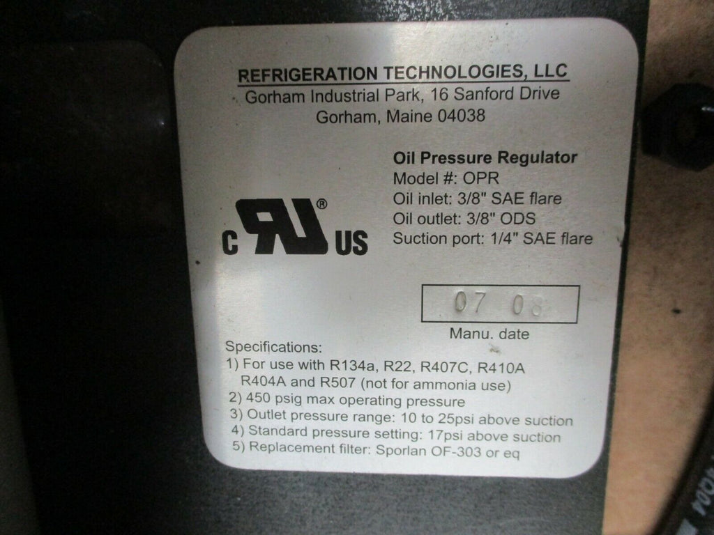 Refrigeration Technologies Oil Pressure Regulator Part #: OPR...