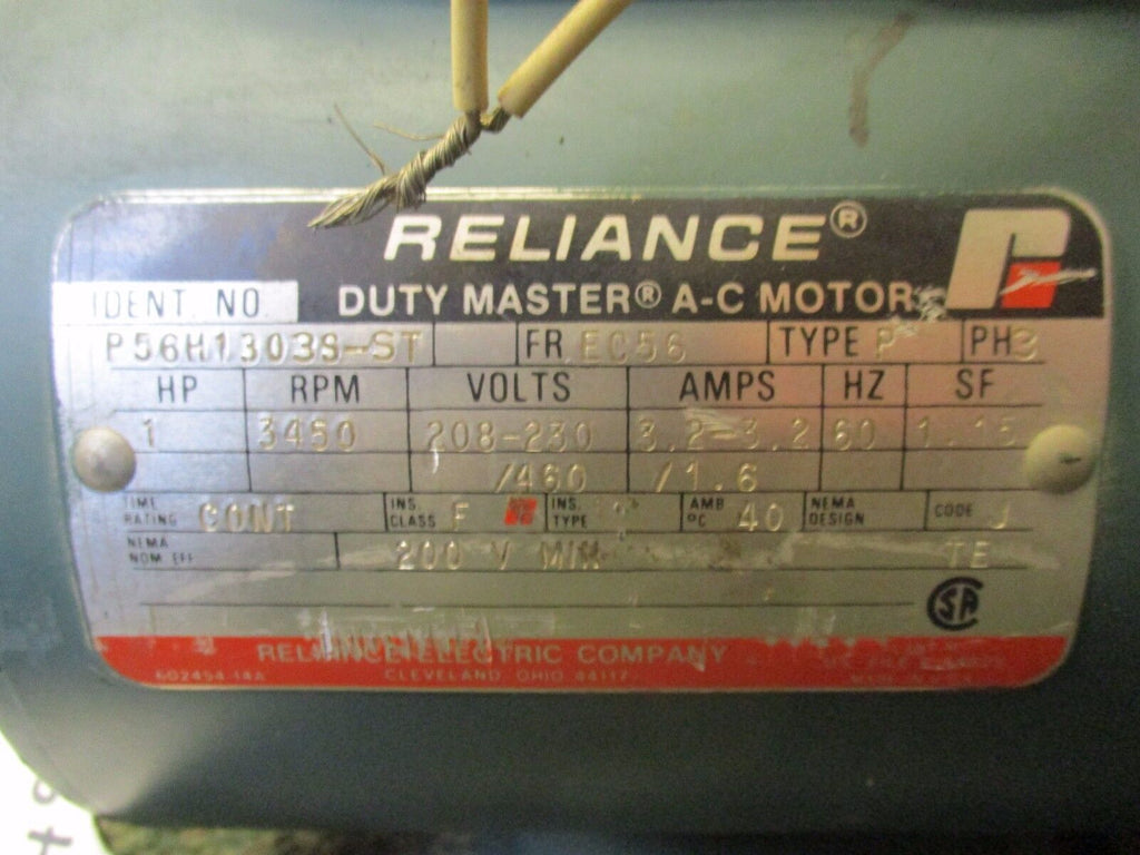 Reliance A-C Motor P56H13036-ST 1HP 3450RPM 208-230/460V 3.2-3.2/1.6A Used