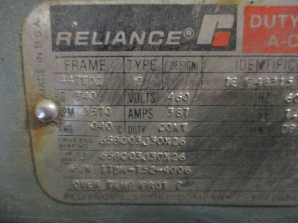 Reliance AC Motor 340HP 3600RPM 460V 387A Frame: 447TDZ ENCL: ...