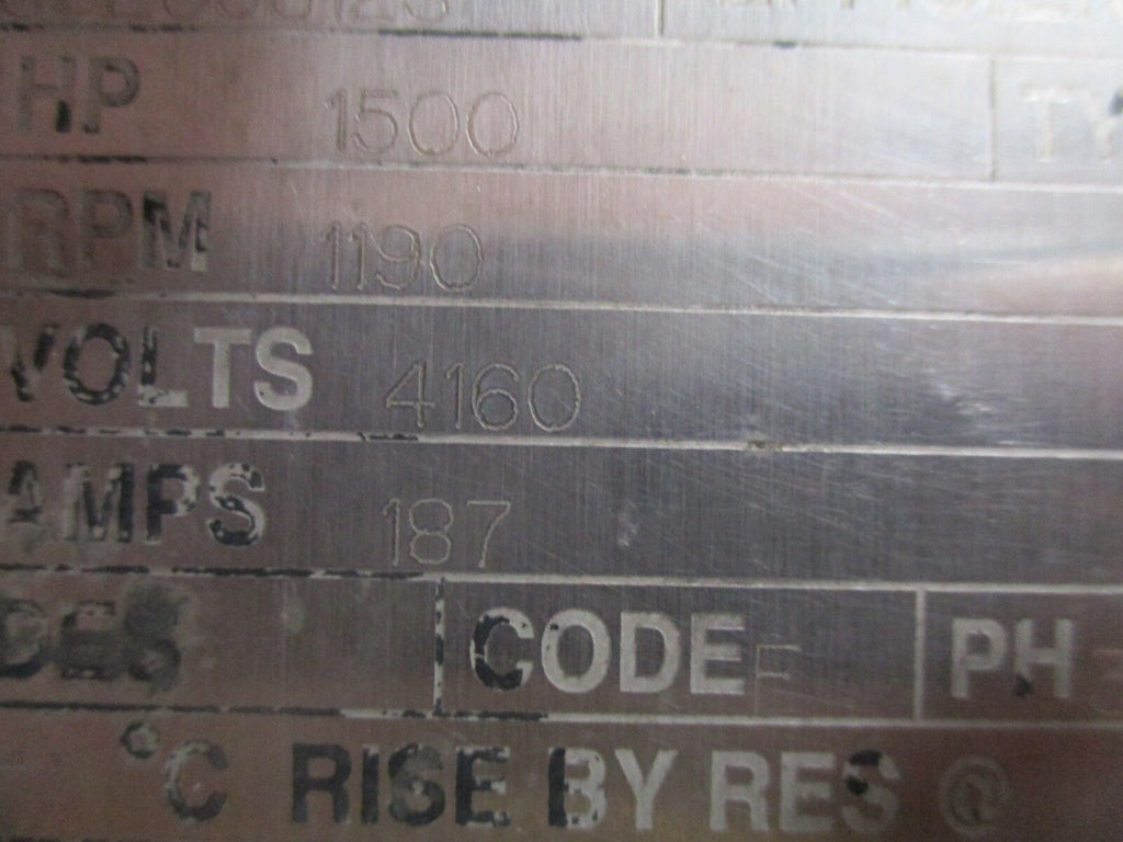 Reliance AC Motor FR: 35EC58125 1500HP 1200RPM ENCL: WPI-FV 187A 4160V Used