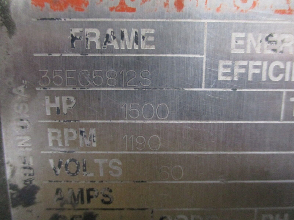 Reliance AC Motor Frame: 35EC58125 1500HP 1190RPM Enclosure: WPI-FV 187A 4160V Used Weight: 8,295 lbs LOC AB11-475 / AB38J1