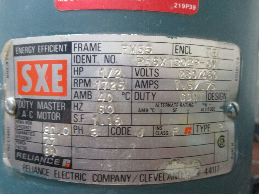 Reliance AC Motor P56X1302P-0M 1/2HP 1800RPM 230/460V 1.5/.75A Fr: FM56 Encl:TE