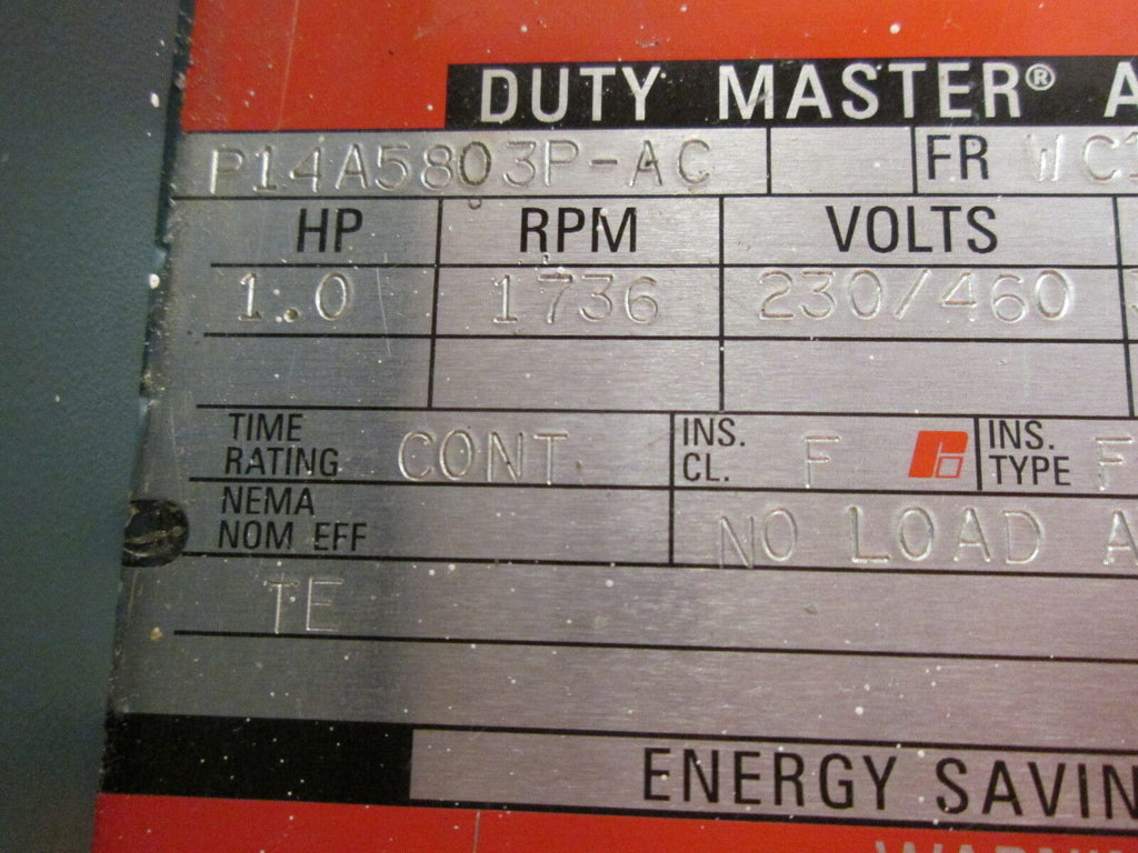 Reliance AC Motor w/ Encoder P14A5803P-AC 1HP 1736RPM FR:WC143TC 230/460V Used Condition: UsedBrand: RelianceMPN: P14A5803P-AC Reliance AC Motor w/ Encoder P14A5803P-AC 1HP 1736RPM FR:WC143TC 230/460V Used Reliance AC Motor w/ Encoder Part #: P14A5803P-AC 1HP 1736RPM Frame: WC143TC Enclosure: TC230/460V 3.2/1.6AUsedLOC AB9F2-26 Reliance AC Motor w/ Encoder Part #: P14A5803P-AC 1HP 1736RPM Frame: WC143TC Enclosure: TC 230/460V 3.2/1.6A Uséd LOC AB9F2-26