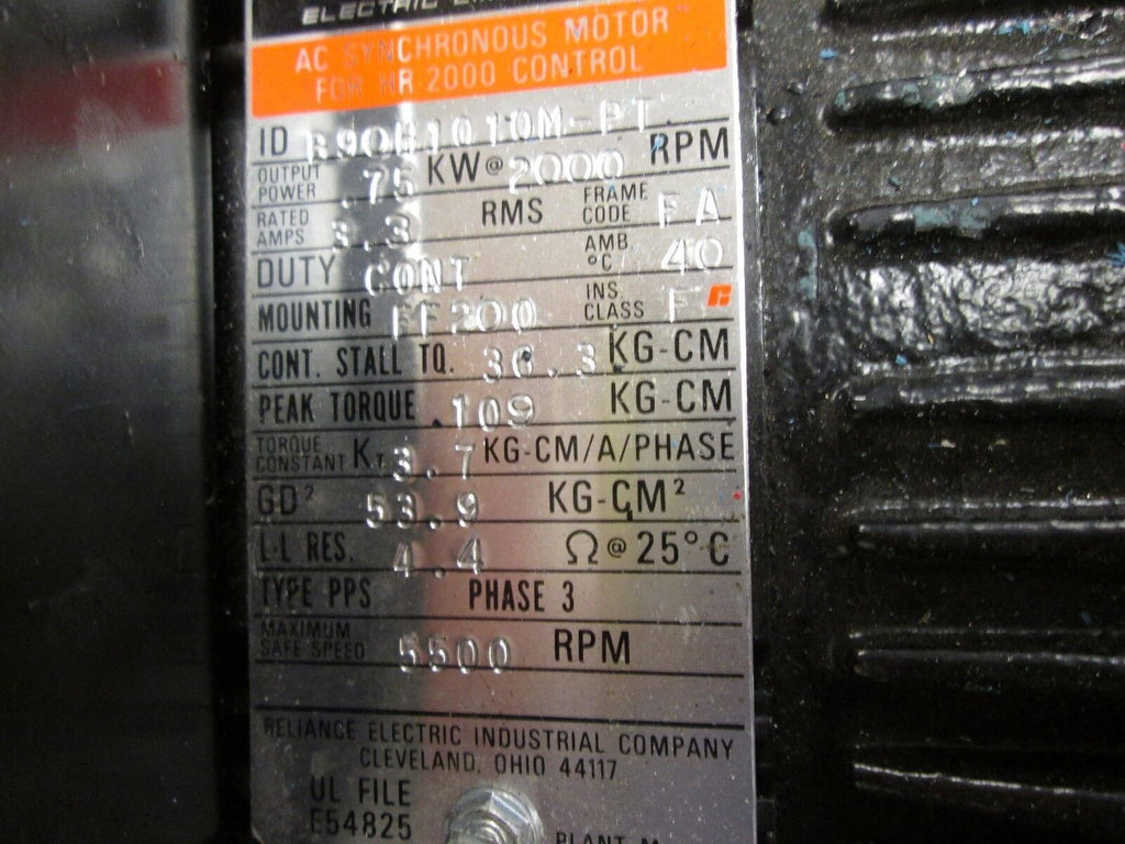 Reliance AC Synchronous Motor For HR-2000 Control B90H1010M-PT Used