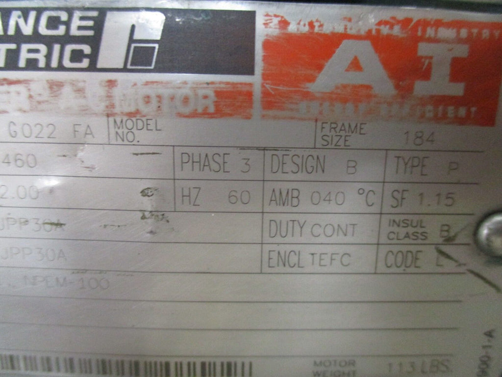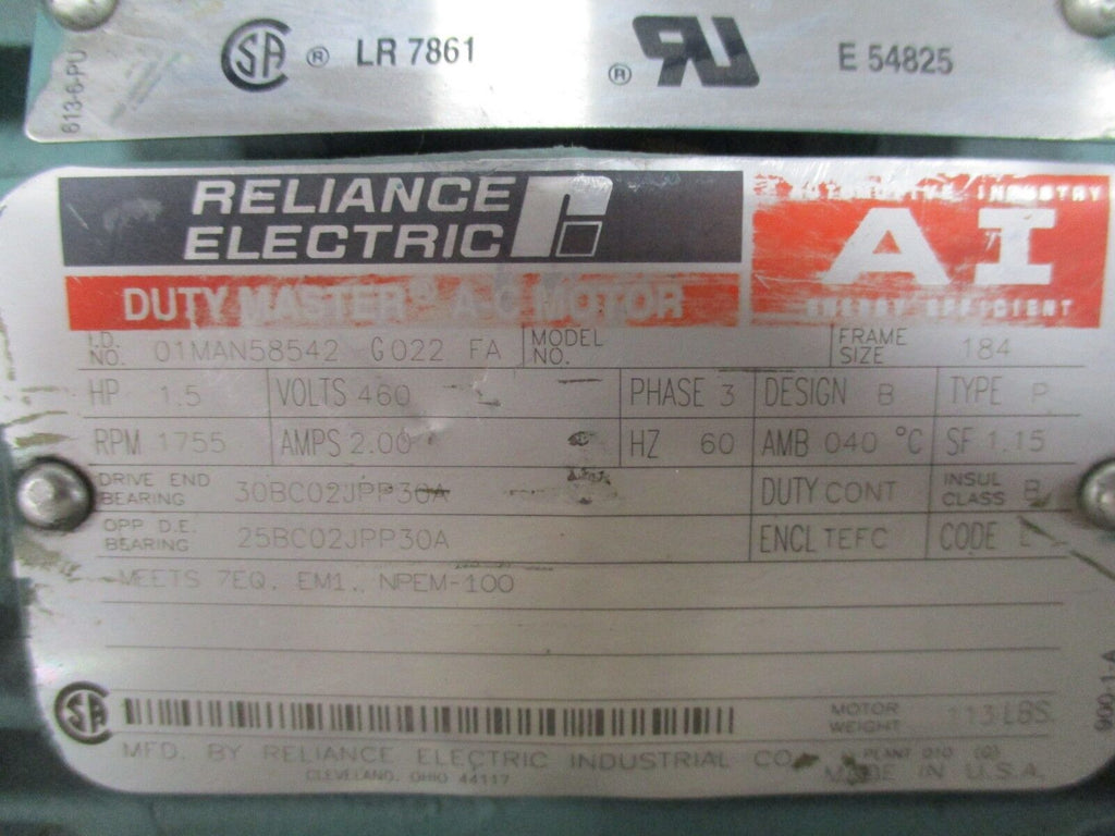 Reliance AI Duty Master AC Motor 01MAN58542 G022 FA 1.5HP 1800...