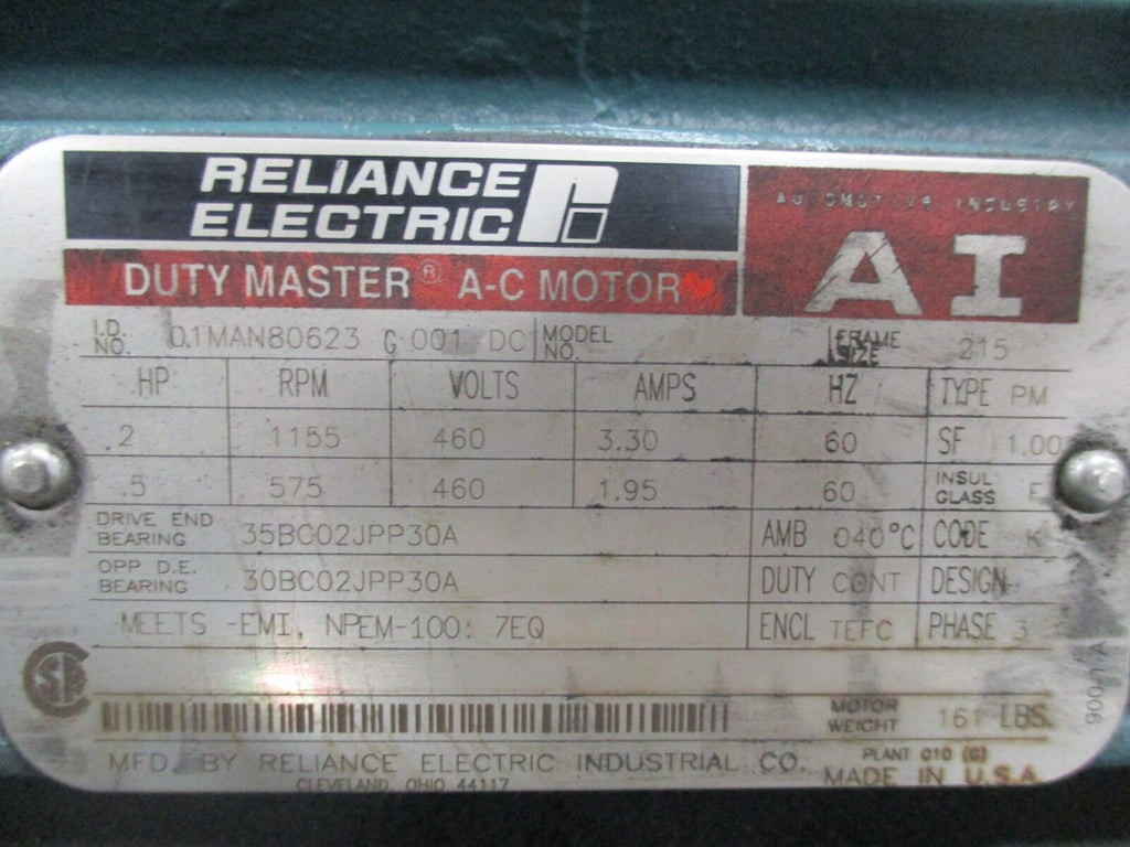 Reliance AI Duty Master AC Motor 01MAN80623 G 001 DC 0.2/0.5HP New Surplus