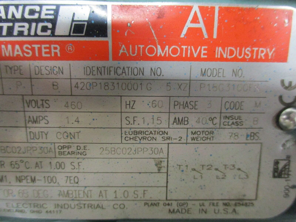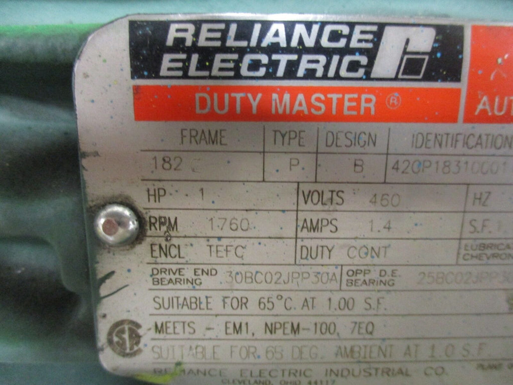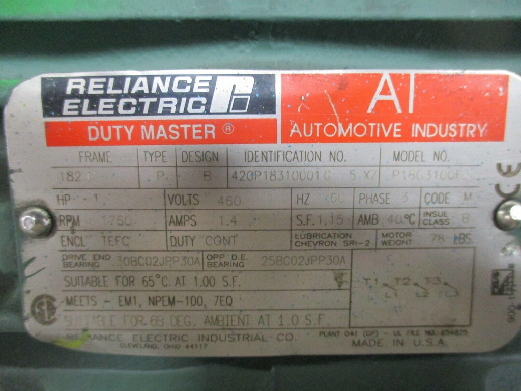Reliance AI Duty Master AC Motor P18G3100F 1HP 1800RPM 460V 1.4A 60Hz 3Ph Used