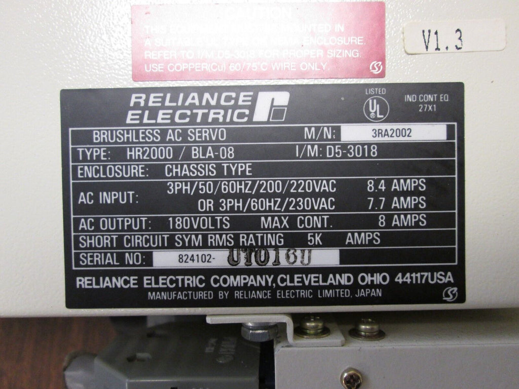 Reliance Brushless AC Servo Drive 3RA2002 Type HR2000 Used