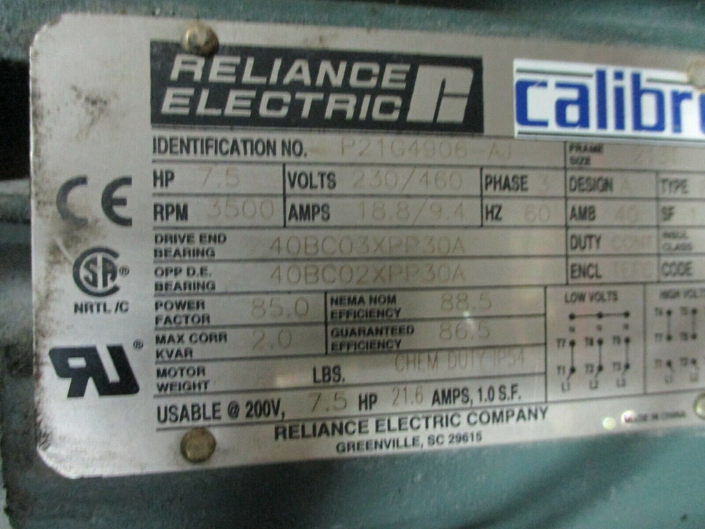 Reliance Calibre Chem Duty AC Motor P21G4906-AJ 7.5HP 3600RPM ...