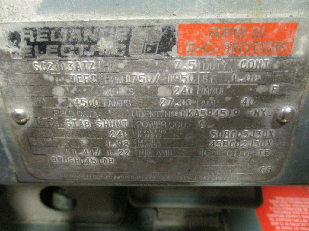 Reliance DC Motor SC2113ATZ Frame 7.5HP 1750/1950RPM 240V 27A ...