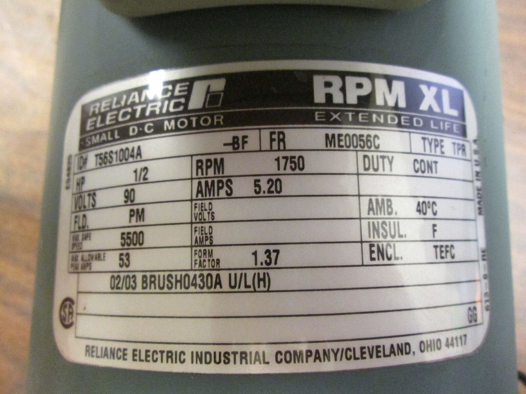 Reliance DC Motor T56S1004A ½HP 1800RPM FR:ME0056C ENCL:TEFC 90V 5.2A Used