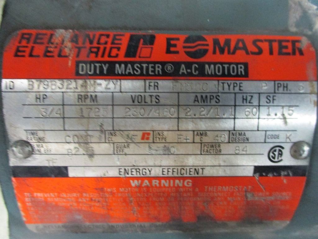 Reliance Duty Master AC Motor B79B3214M-ZY 3/4HP 1800RPM FR:FM...