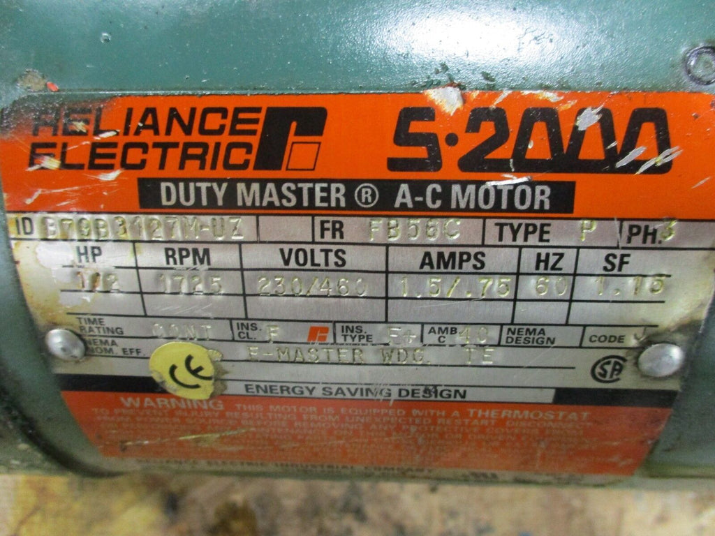 Reliance Duty Master AC Motor w/ Gear B79B3127M-UZ 1/2HP 1800RPM FR:FB56C Used_x000D_ Condition: UsedMPN: B79B3127M-UZBrand: Reliance Electric Reliance Duty Master AC Motor w/ Gear B79B3127M-UZ 1/2HP 1800RPM FR:FB56C Used Reliance Duty Master AC Motor w/ Gear Part #: B79B3127M-UZ 1/2HP 1725RPM Frame: FB56C 230/460V1.5/.75AUsedLOC AB11-708 / AB39J2 Reliance Duty Master AC Motor w/ Gear Part #: B79B3127M-UZ 1/2HP 1725RPM Frame: FB56C 230/460V 1.5/.75A Uséd LOC AB11-708 / AB39J2