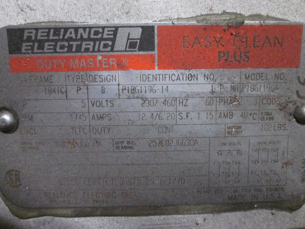 Reliance Duty Master Motor P18G1196A 5HP 1745RPM 12.4/6.20A 23...