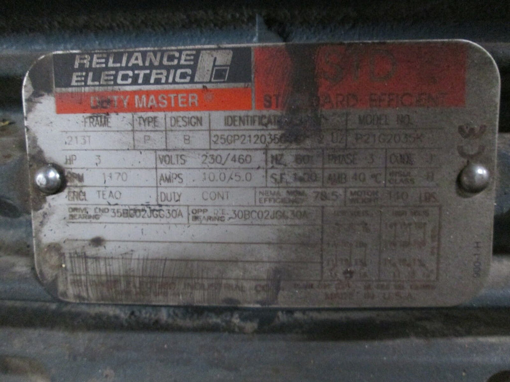 Reliance Duty Master Standard Efficient Motor P21G2035K 3HP 1170RPM 10/5A Used