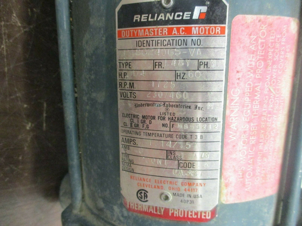 Reliance Electric AC Gearmotor P48G2406S-VA 1/4HP 1800RPM FR: L48Y 230/460V 3Ph Condition: UsedAC Frequency Rating: 60 HzCurrent Type: ACAC Phase: Three PhaseMPN: P48G2406S-VARated Load (HP): 1/4Brand: Reliance ElectricNominal Rated Input Voltage: 230 V,460 V Reliance Electric AC Gearmotor P48G2406S-VA 1/4HP 1800RPM FR: L48Y 230/460V 3Ph Reliance Electric AC Gearmotor Part #: P48G2406S-VA 1/4HP 1725RPM Frame: L48Y 230/460V 3Ph 60HzUsedLOC AB9D2-3 Reliance Electric AC Gearmotor Part #: P48G2406S-VA 1/4HP 1725RPM Frame: L48Y 230/460V 3Ph 60Hz Uséd LOC AB9D2-3